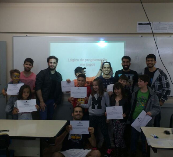 Este curso foi ministrado para crianças com o intuito de desenvolver o raciocínio lógico, a partir de brincadeiras e jogos. No final, a crianças criam um jogo, utilizando a plataforma Code.org.